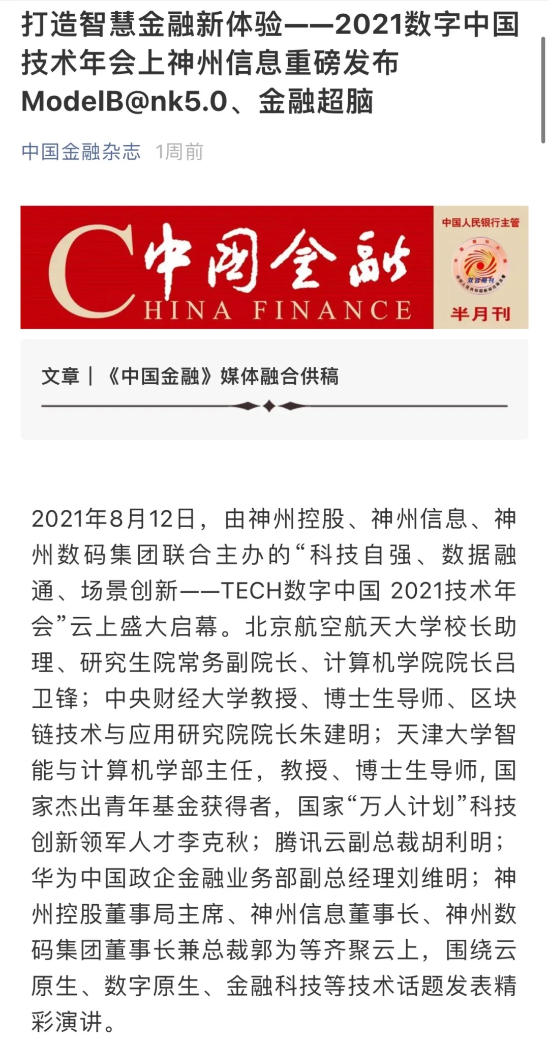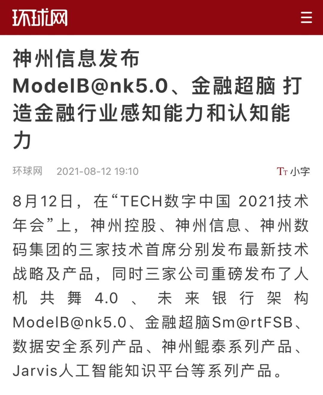 神州信息发布ModelB@nk5.0、金融超脑 打造金融行业感知能力和认知能力