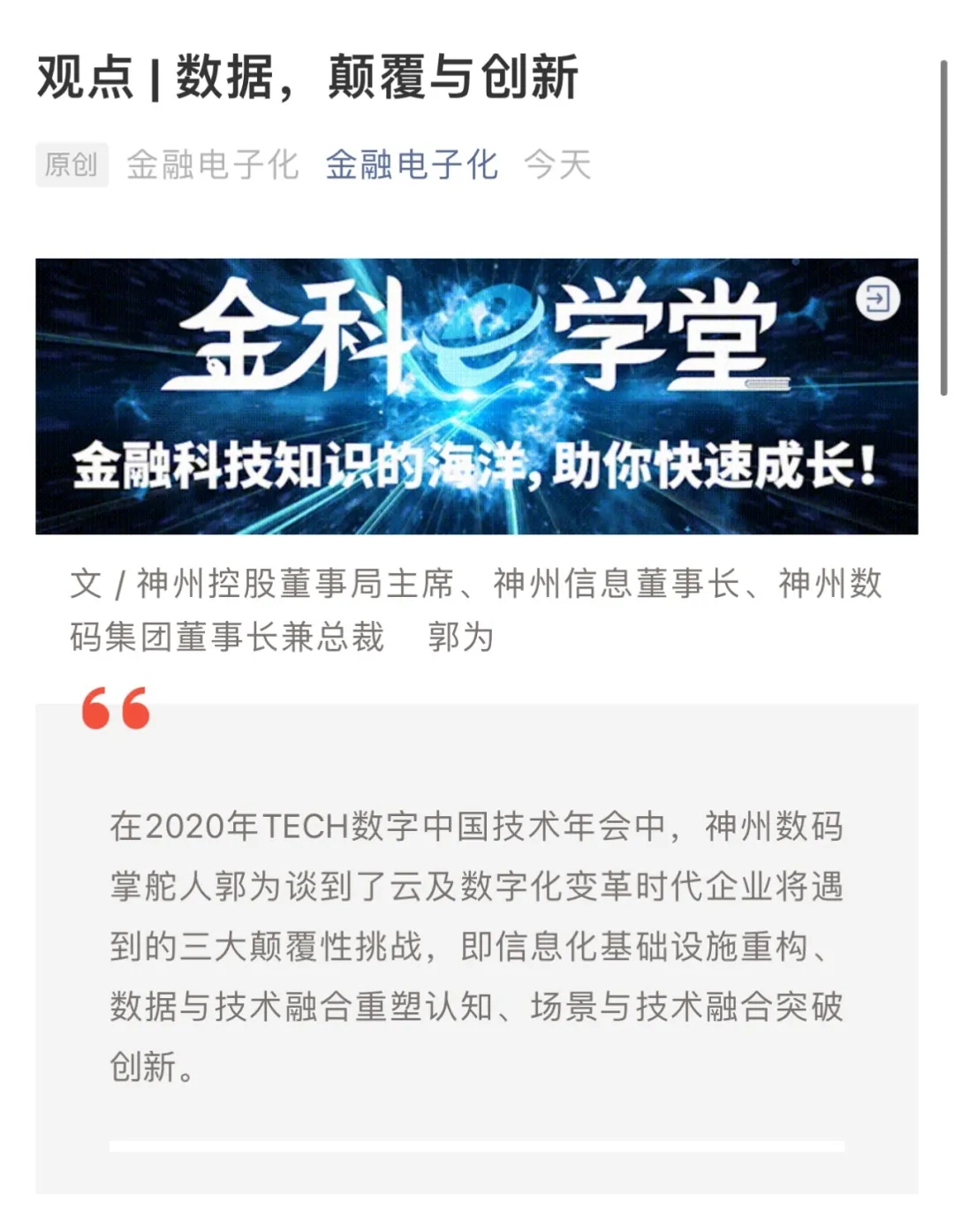 神州控股郭为:数字原生企业将面临以云原生为核心的技术范式颠覆